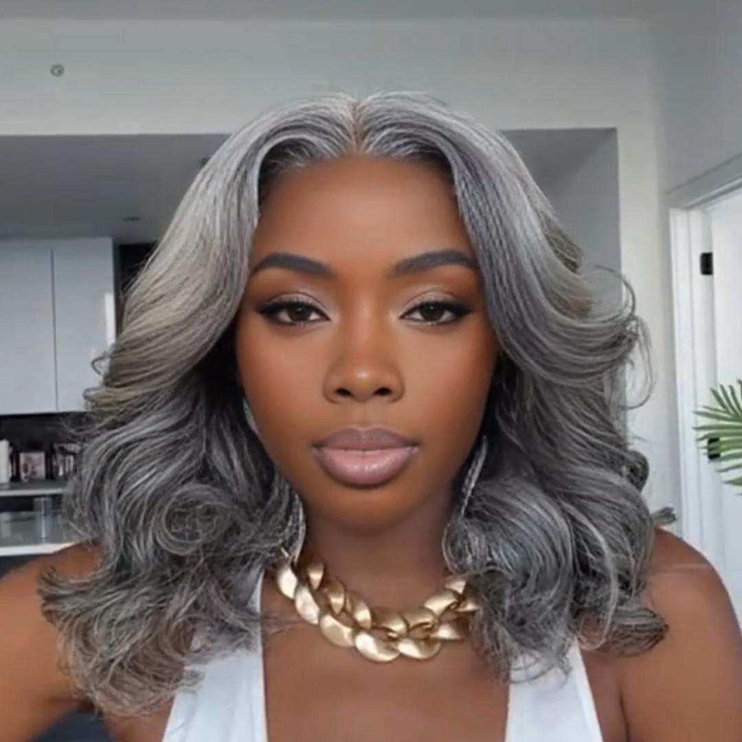 Elegant Grace: Shoulder-Length Salt and Pepper Wig for Seniors